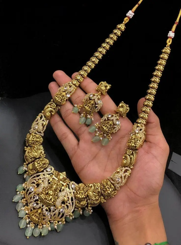 The matching earrings perfectly complement the necklace, making it an ideal set for weddings, festive occasions, or special events.