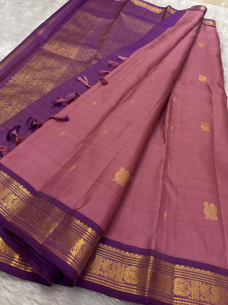 Authentic Handwoven Pure Kanchipuram Silk Saree For Timeless Elegance In Lavender Code : BMPKSKS500LA