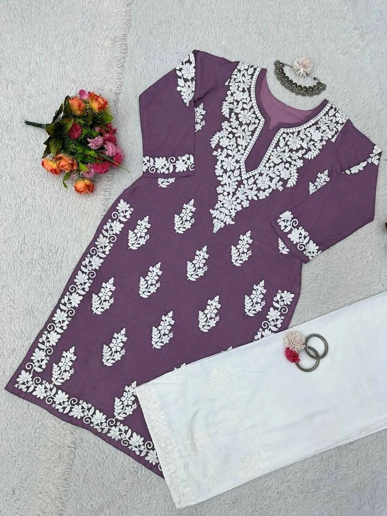 Chinestich Work Rayon Dress Set In Wine Color Code : YN-KRY5690-WI