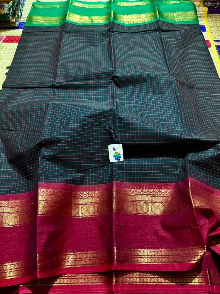 Classic Checked Ganga Jamuna Saree With Running Blouse In Dark Green Code : TRGJRBCS100DG