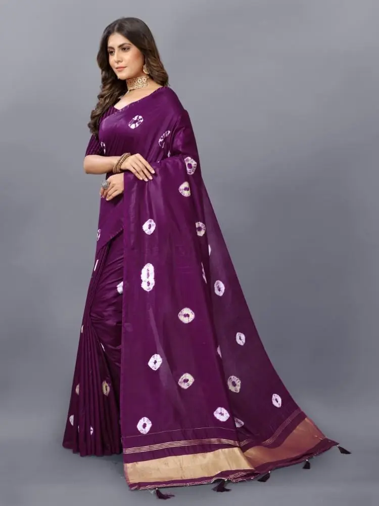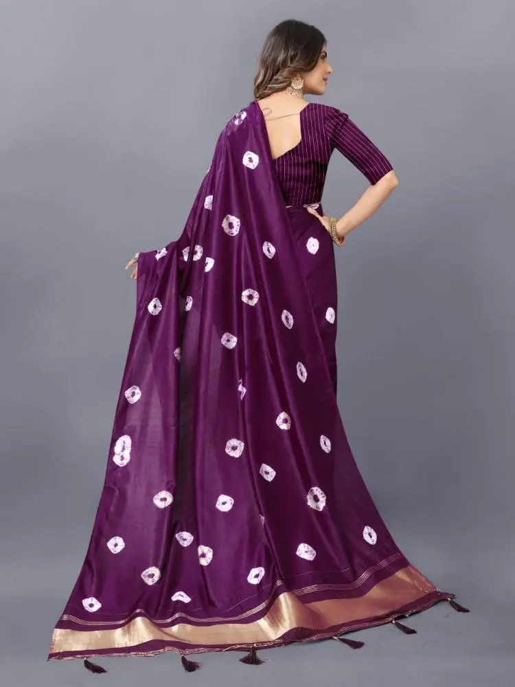 Elegant Shibori Bandhani Craftsmanship Saree In Purple Code : YNSSBSRRT1001PU2