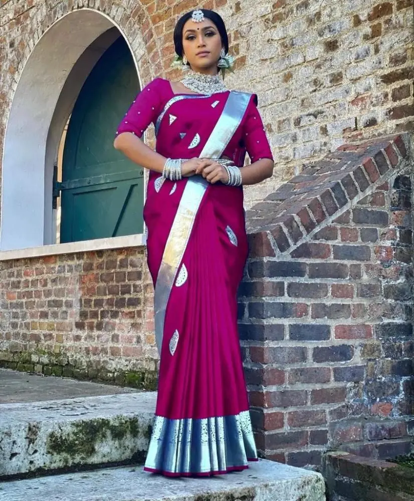 The Soft Lichi Silk Saree is a luxurious and elegant attire, ideal for special occasions.