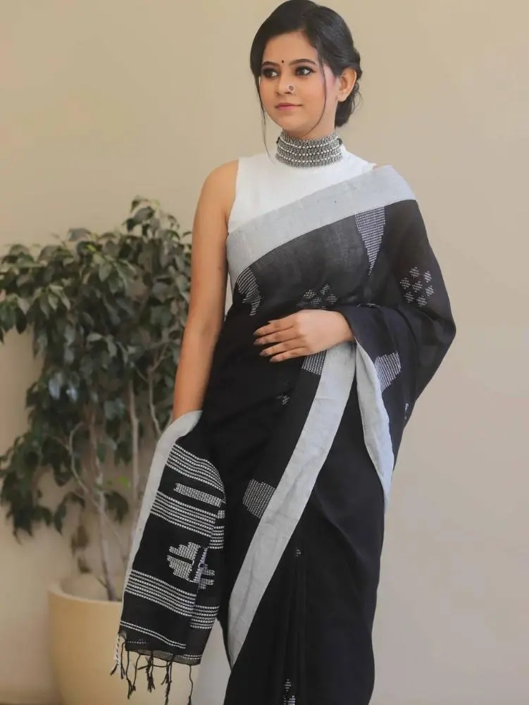 Ideal for special occasions, this saree combines softness and style to create a graceful and memorable look.