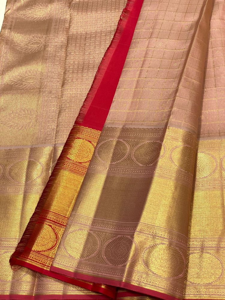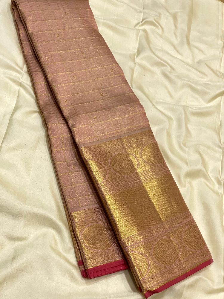 Traditional Long Border Zari Brocade Saree With Contrast Blouse In Beige Color Code : TRPKLBBSK100BE