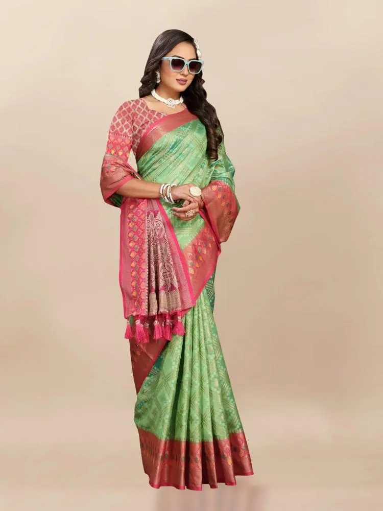 Celebrate tradition with this organza silk saree showcasing traditional Meenakari artistry.