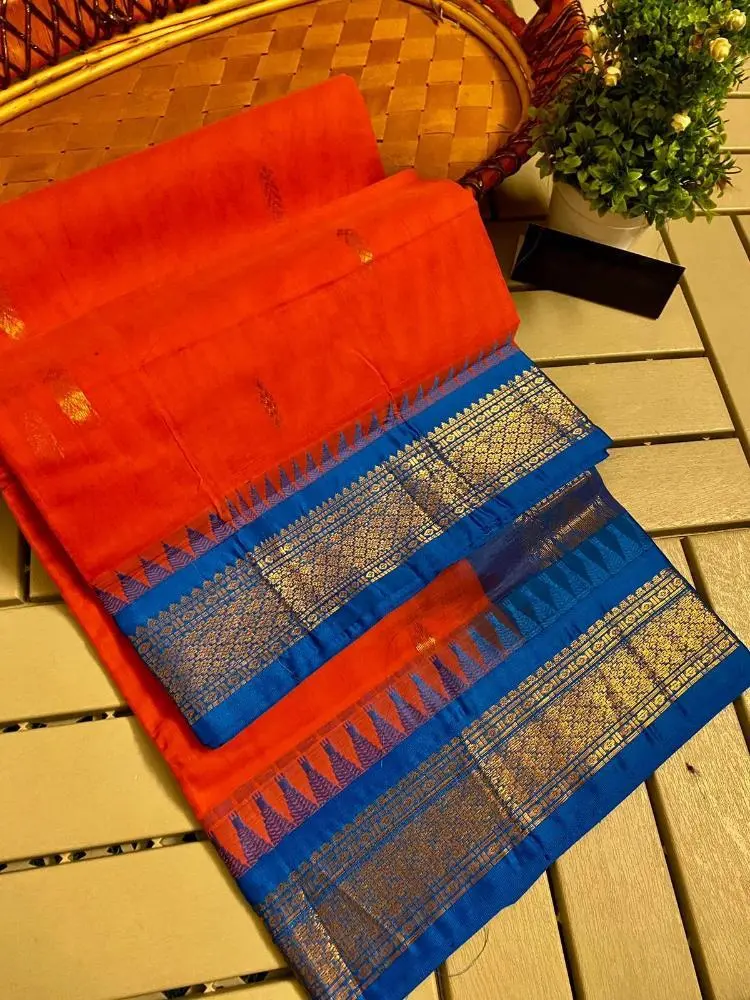Work: Zari Weaving Design with Rich Zari Weaving Pallu, Contrast Border, and Tassels