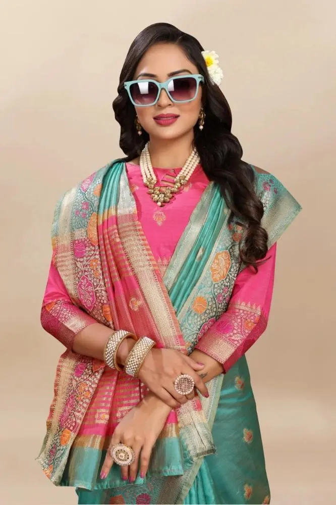 Note: The saree comes with a running blouse and the blouse worn by the model is for representational purposes.
