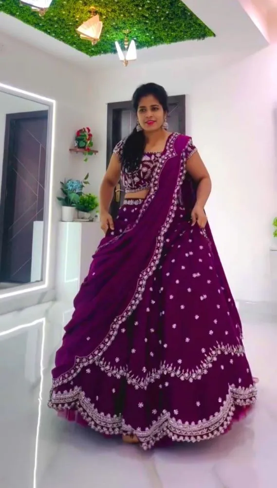 Lustrous Faux Georgette Lehenga Choli In Lavender Code : YNLCKESH1327089LA