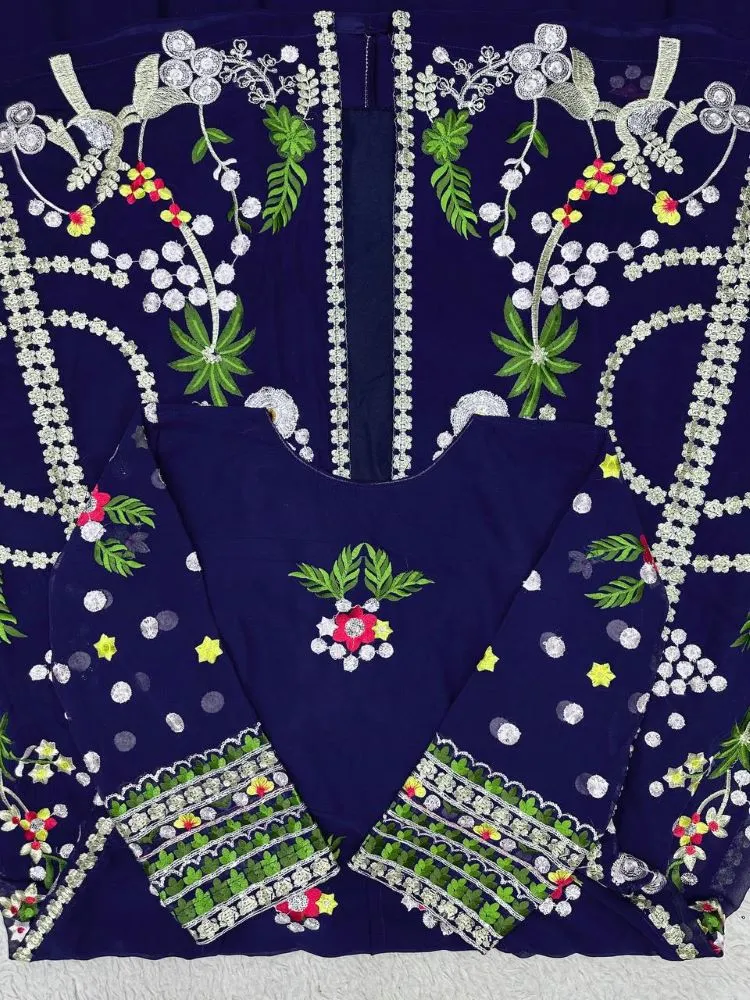 Lustrous Faux Georgette Lehenga Choli In Navy Blue Code : YNLCRIN162218NB
