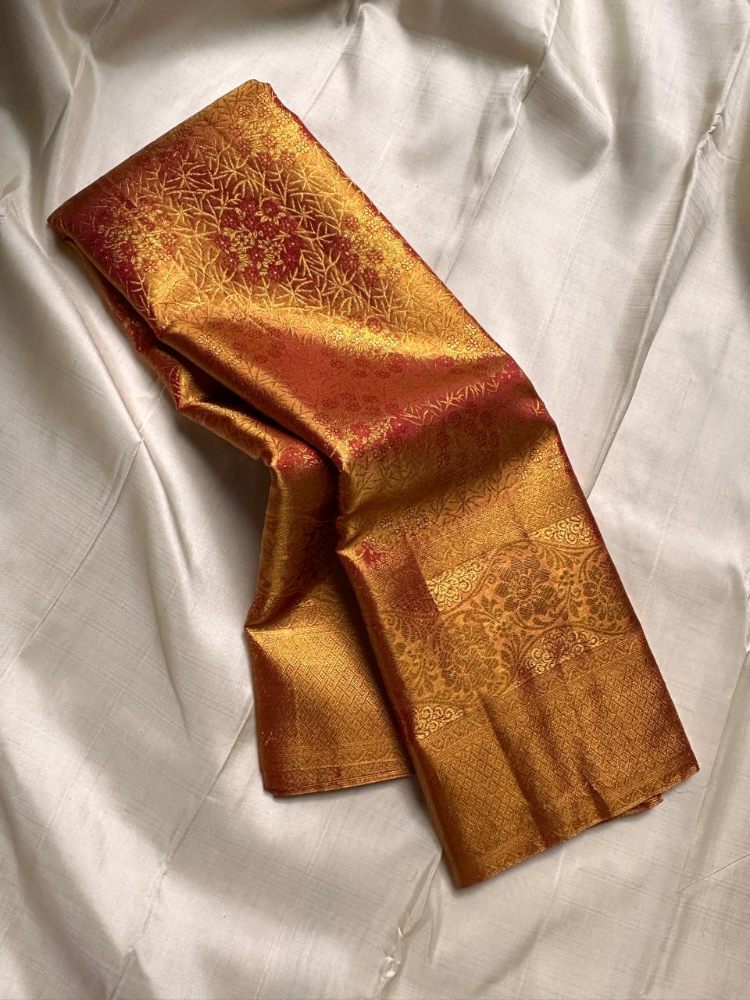 Authentic Kanchipuram Pure Silk Handloom Saree In Orange Code : RTSPHKSK1001OR