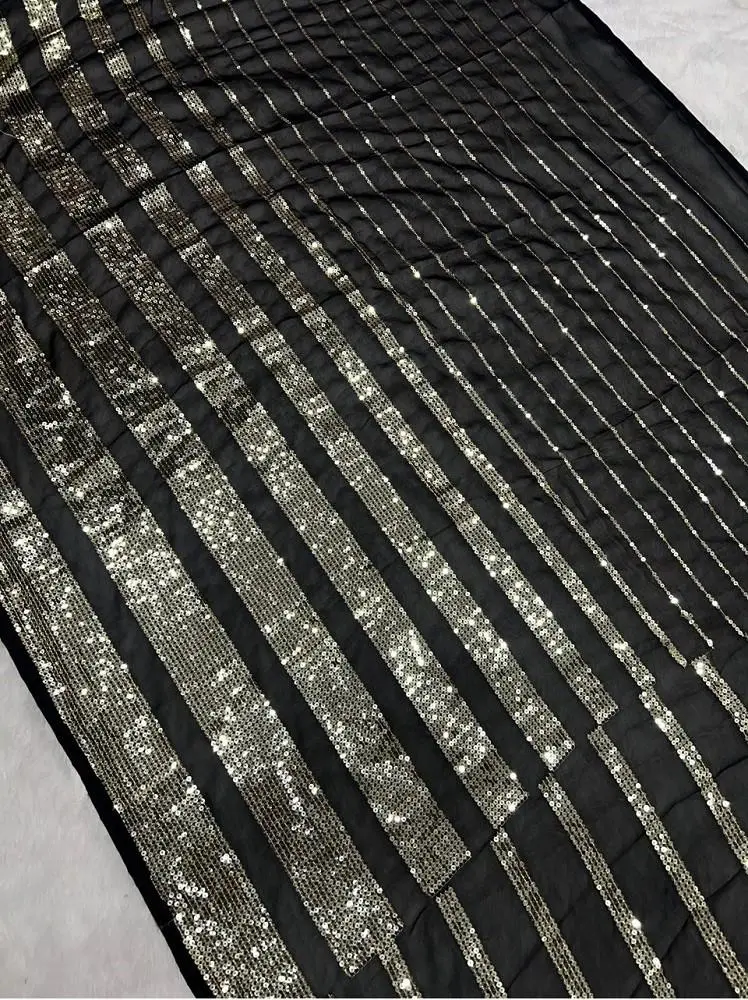 Black Floral Print Georgette Saree With Delicate Lace Border Code : YN-SC5258-BK