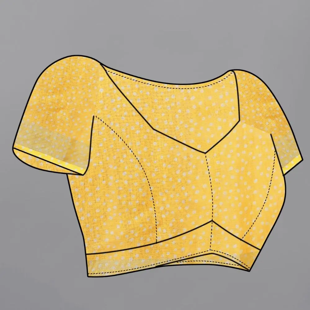 Elegant Linen Cotton Saree With Printed Design And Coordinated Running Blouse In Yellow Code : YNSLCTSRRT001YL