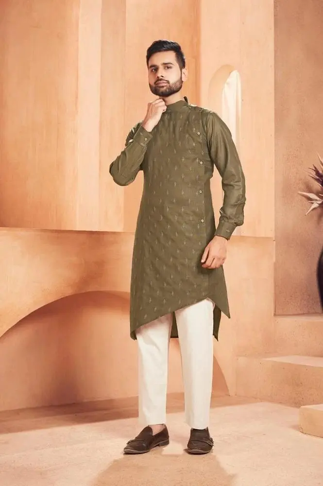 This Embroidered Cotton Kurta Set is designed for both father and son, offering a charming and coordinated look.