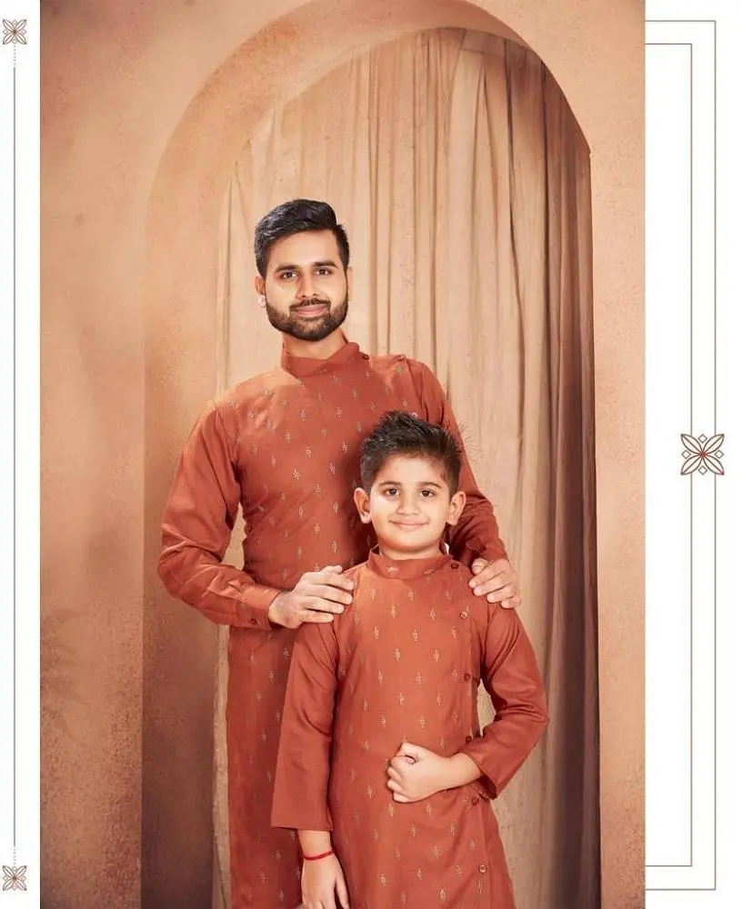 Perfect for festive occasions, family gatherings, or special events, this matching kurta set enhances the bond between father and son with its elegant and traditional design.