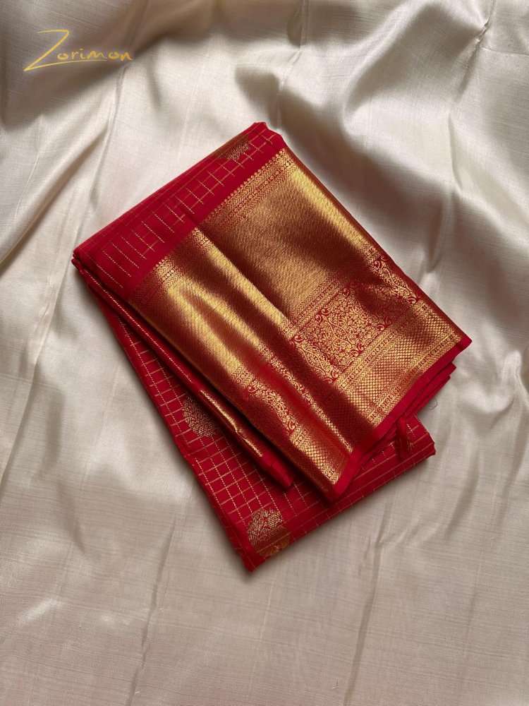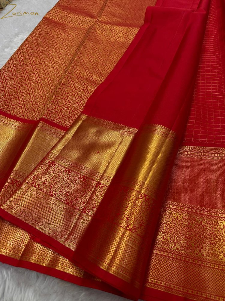 Experience luxury with this pure handloom Kanchipuram silk saree, a testament to traditional artistry. Silk Mark certified, it ensures authenticity and unparalleled quality. Perfect for grand occasions, this saree exudes elegance and grace. Own a masterpiece that reflects heritage and timeless style.