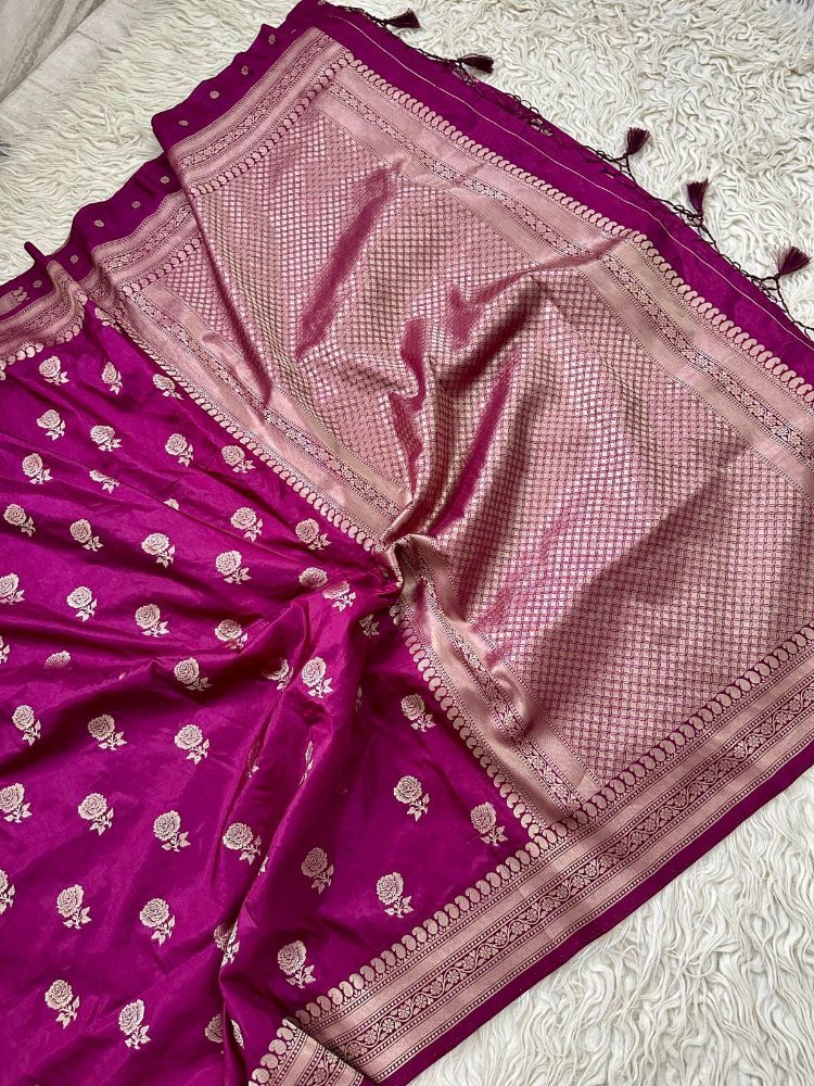 Luxurious Banarasi Crepe Silk Saree With Jacquard Rich Pallu In Maroon Code : TRBJCSK100MA