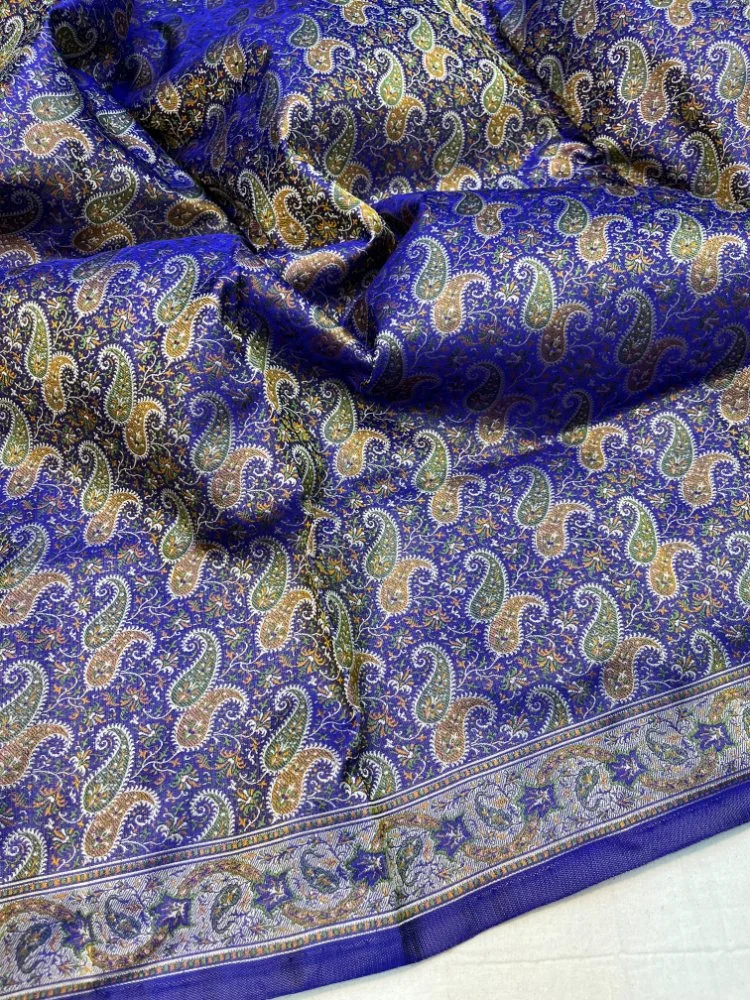 The rich texture of the Katan silk, combined with the stunning Jamewar patterns, showcases exquisite craftsmanship and attention to detail.