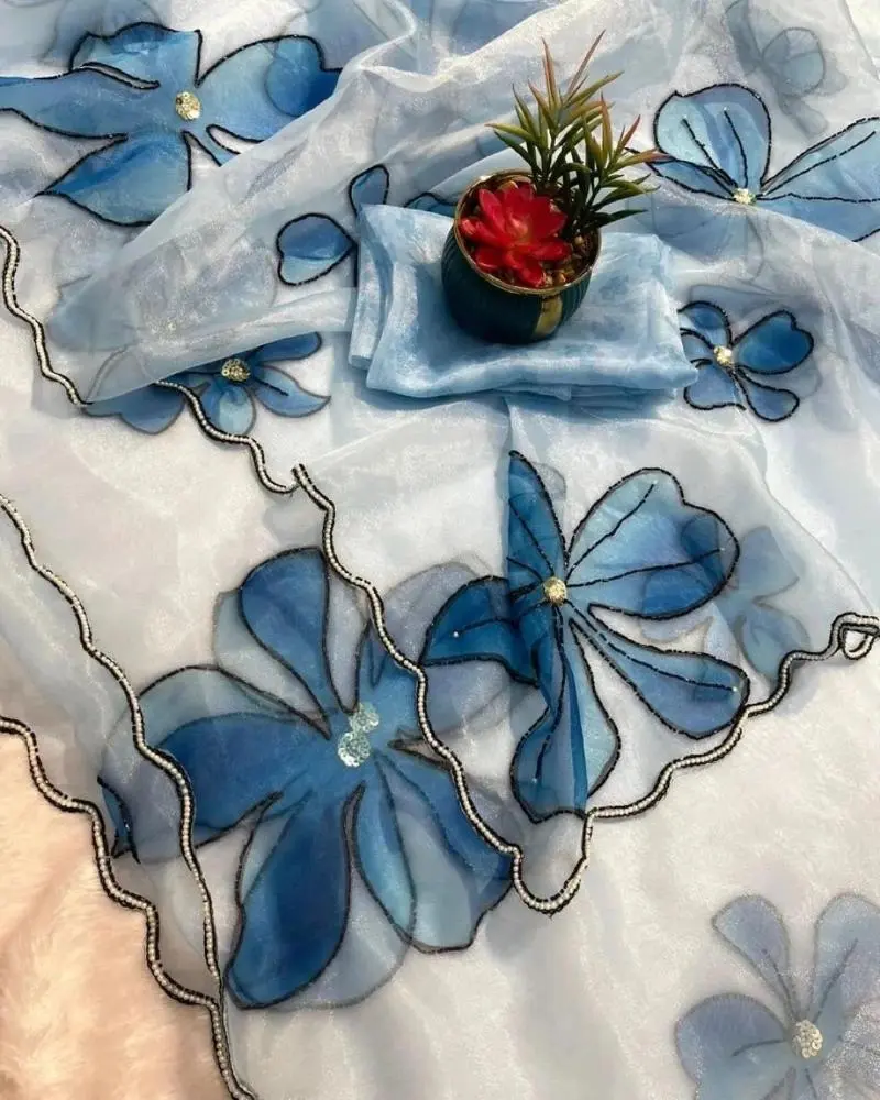 Luxurious Handprinted Satin Organza Saree Code : YNSOR02ARM