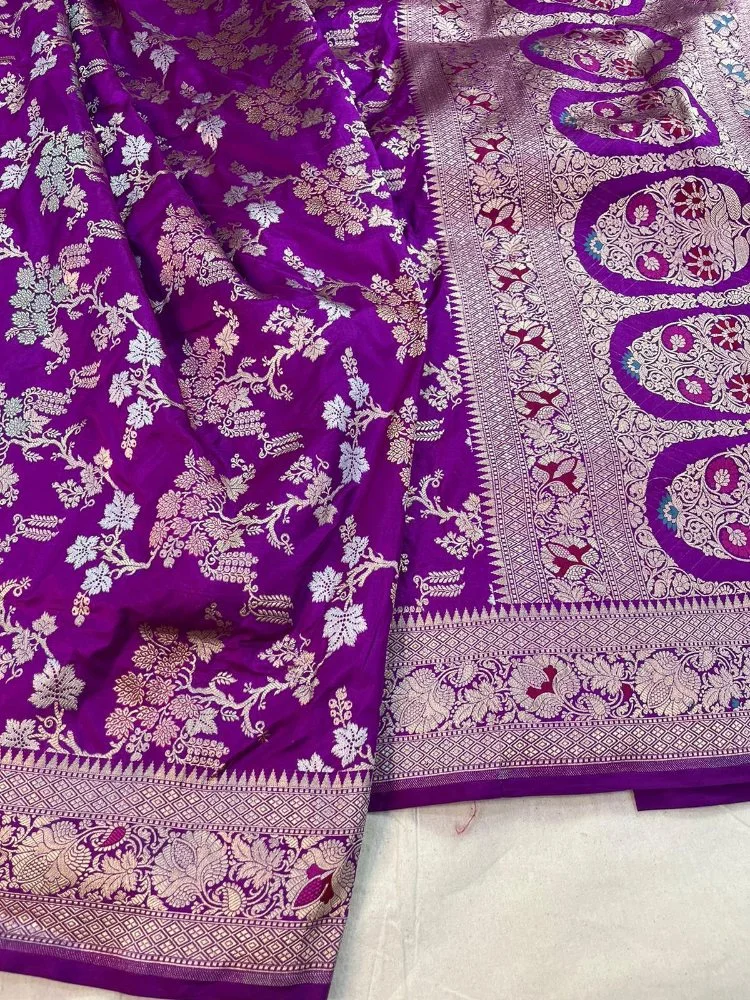 This lovely Banarasi Katan silk saree showcases beautiful craftsmanship, perfect for elevating your festive wardrobe.