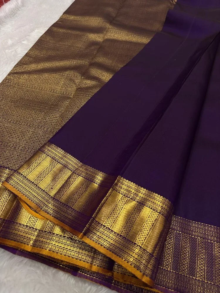 Premium Kanchipuram Silk Saree With Elegant Handwoven Pallu In Purple Code : SOMSKPSK100PU
