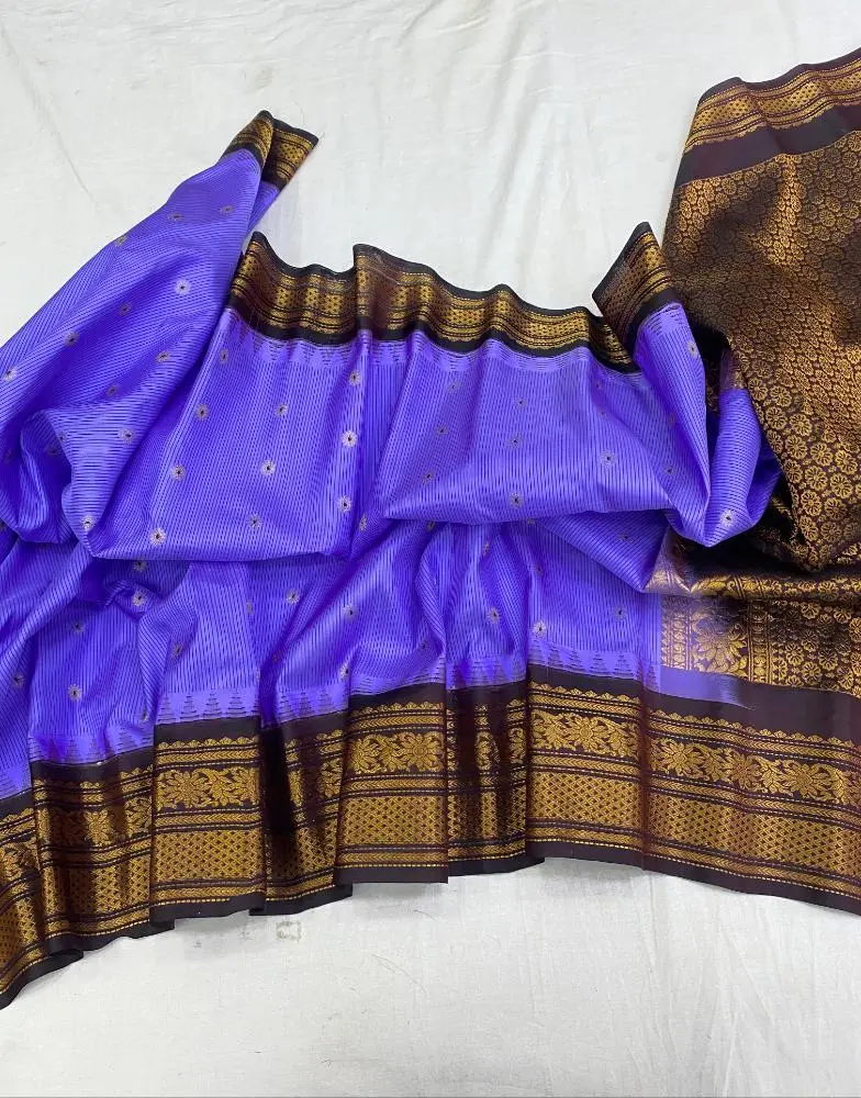Traditional Kanchi Border Gadwal Saree With Chic Plain Butta Design In Purple Code : SMSGDKB1002PU