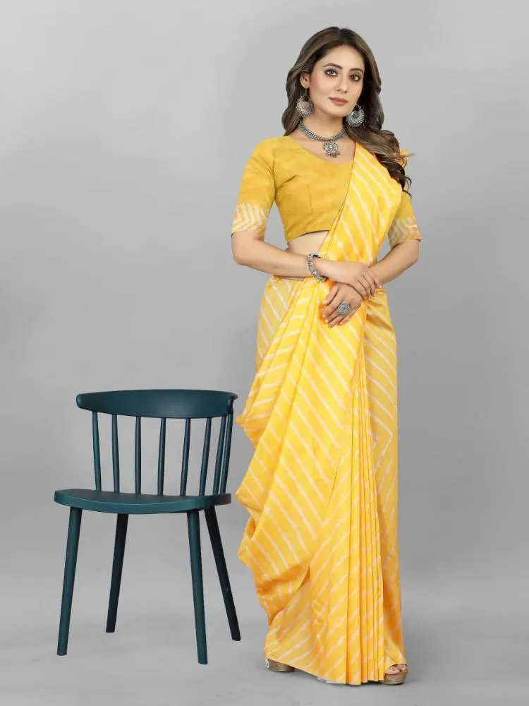 Wax Batik Saree With Handcrafted Designs And Coordinated Printed Blouse In Yellow Code : YNSBTHW201YL1